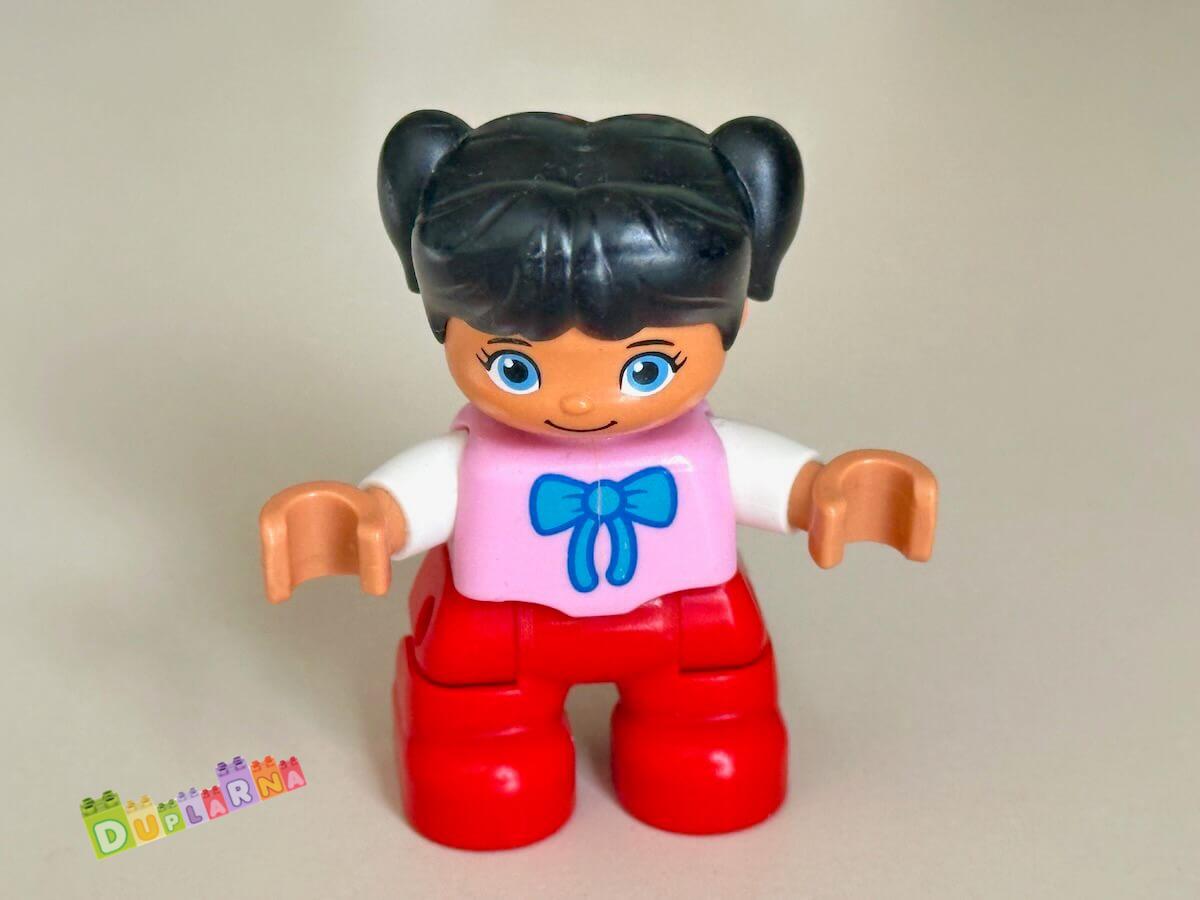 Lego Duplo Dítě - černovlasá holčička s mašlí / červené kalhoty