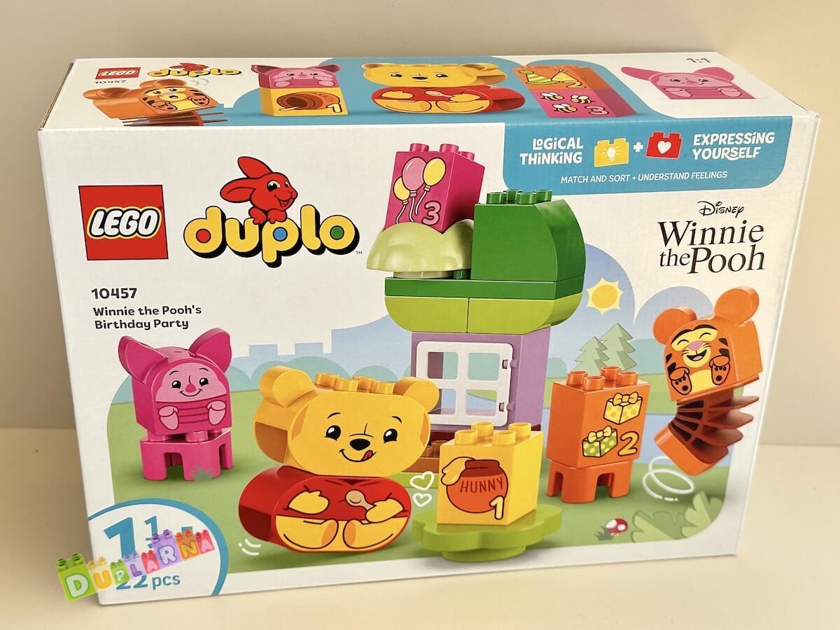 Malé děti si zahrají na oslavu se 3 figurkami LEGO DUPLO: Medvídkem Pú, Tygrem a Prasátkem. Každá postava má oboustranný obličej s různými výrazy, takže děti si můžou vymýšlet nekonečné kreativní hry a nové příběhy. Tato zábavná také pomáhá rozvíjet sociální a dovednosti a empatii nejmenších dětí, které prozkoumají různé emoce během oslavy, od radosti z rozbalování dárků až po nepříjemný pocit po snědení spousty sladkostí!
