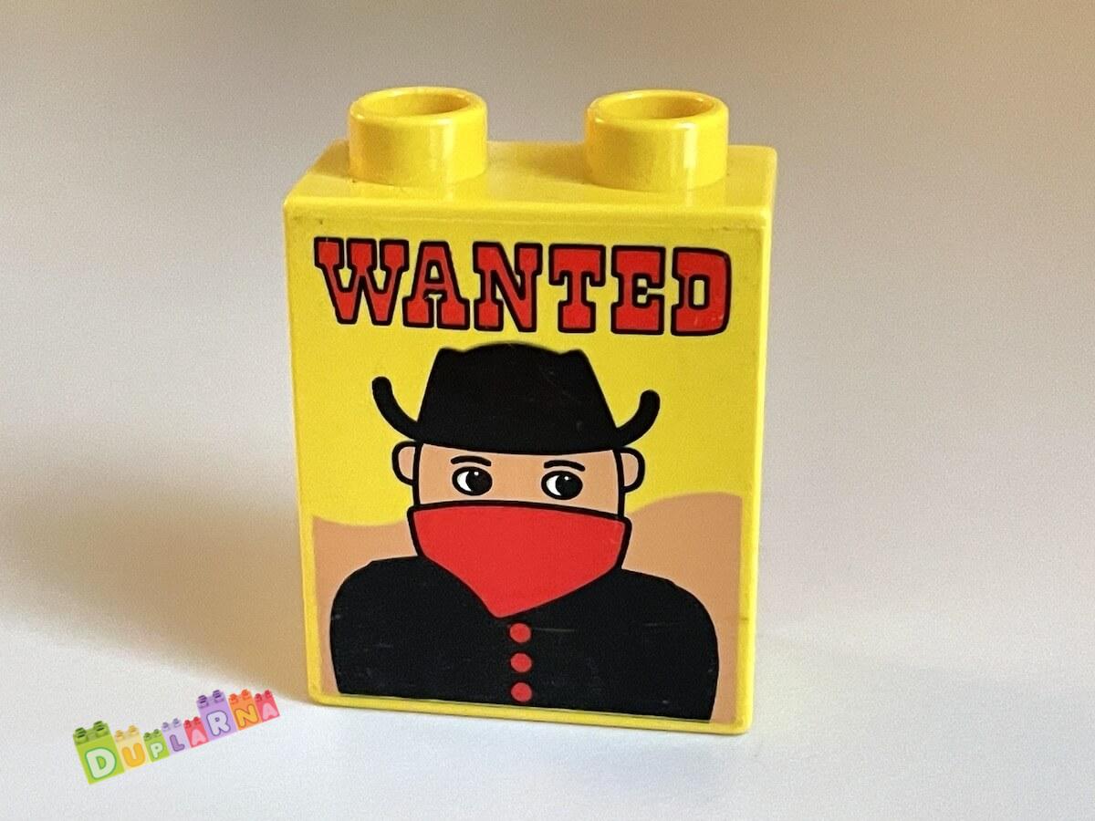 Lego Duplo - Kostka žlutá s potiskem - "Wanted" - bandita, zločinec